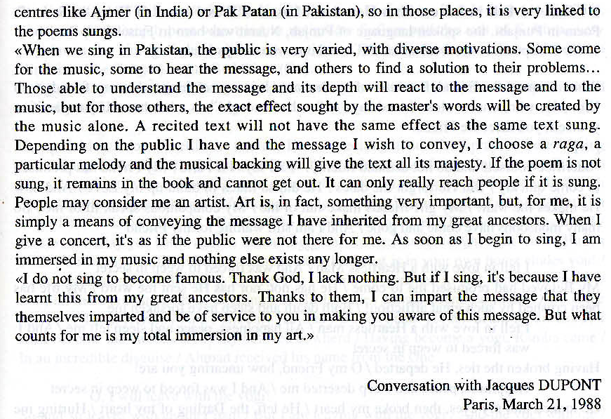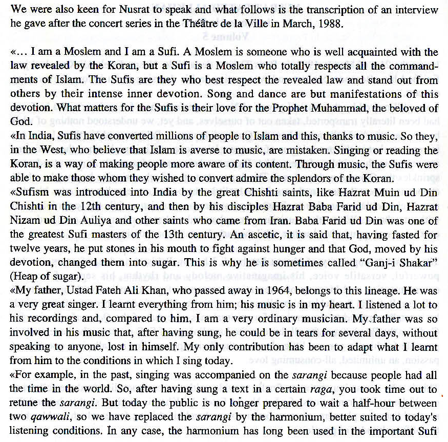 Nusrat's Interview March 21, 1988 by Jacques DUPONT